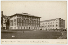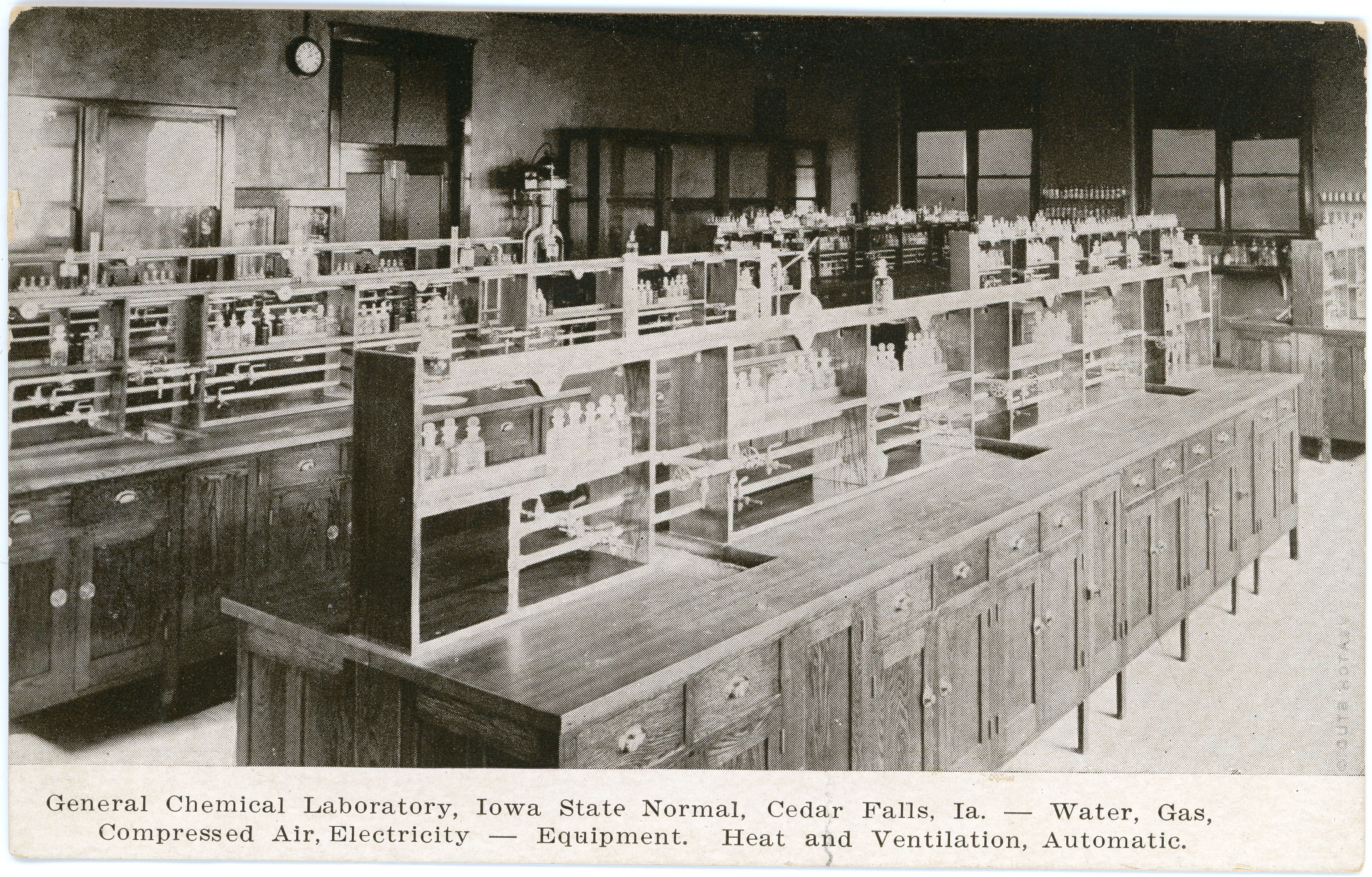 The Iowa State Normal School, now the University of Northern Iowa, included science courses in its curriculum when the school opened in September 1876. Professor Moses Willard Bartlett was in charge of that work. The earliest laboratories likely consisted of small arrays of equipment spread out on tables in a classroom. By fall 1878, when the school had only a single classroom building, a former storeroom was converted into a laboratory. The student newspaper, The Students' Offering, reported: