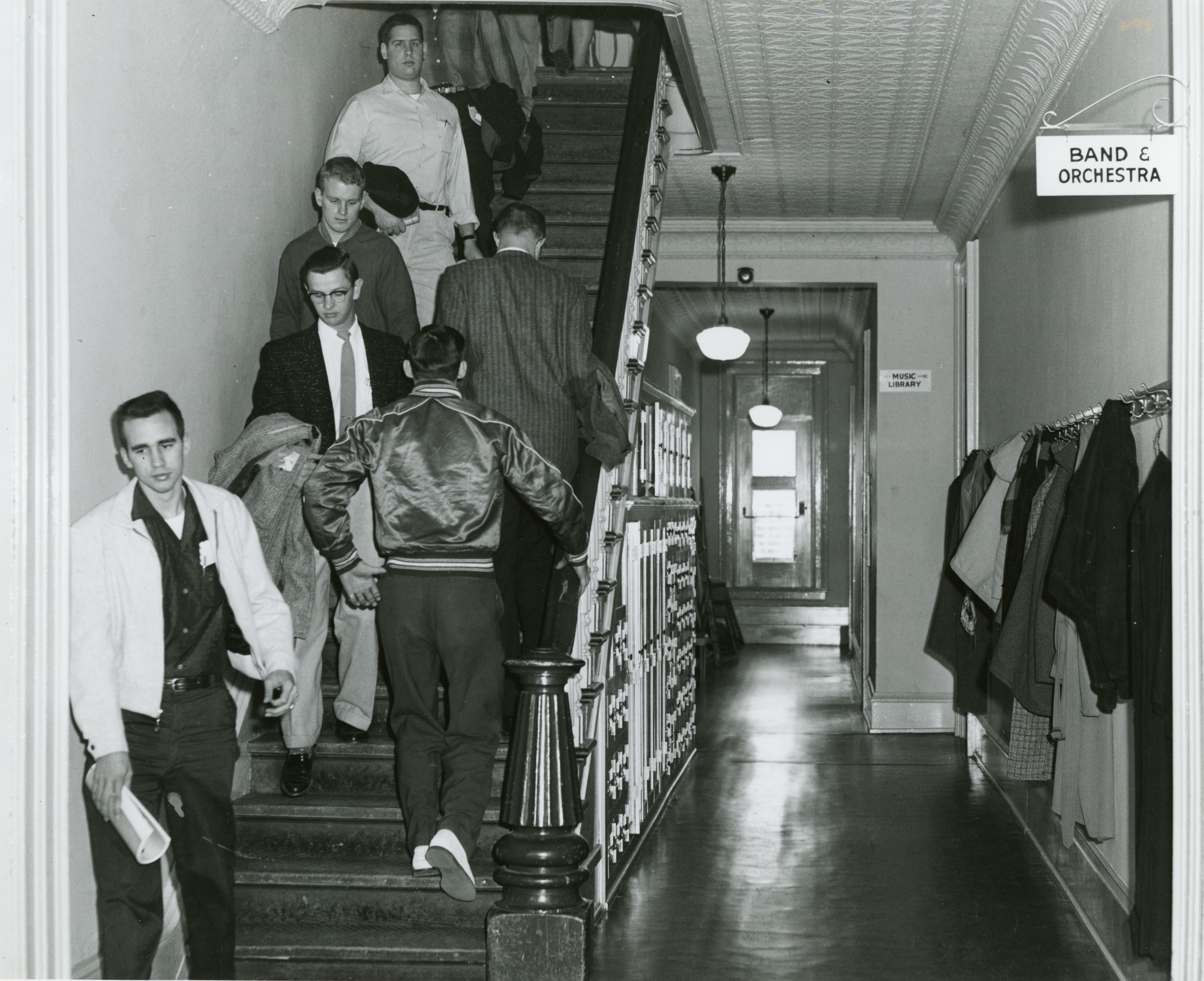 In 1962, when the Music Department moved from Central Hall and to Russell Hall, the top floor was closed. Officials cited narrow stairways among the hazards of the old building.