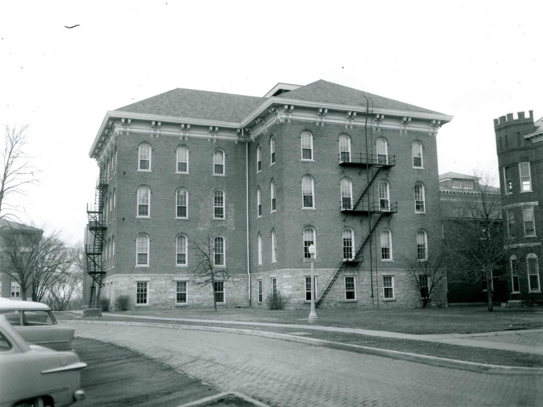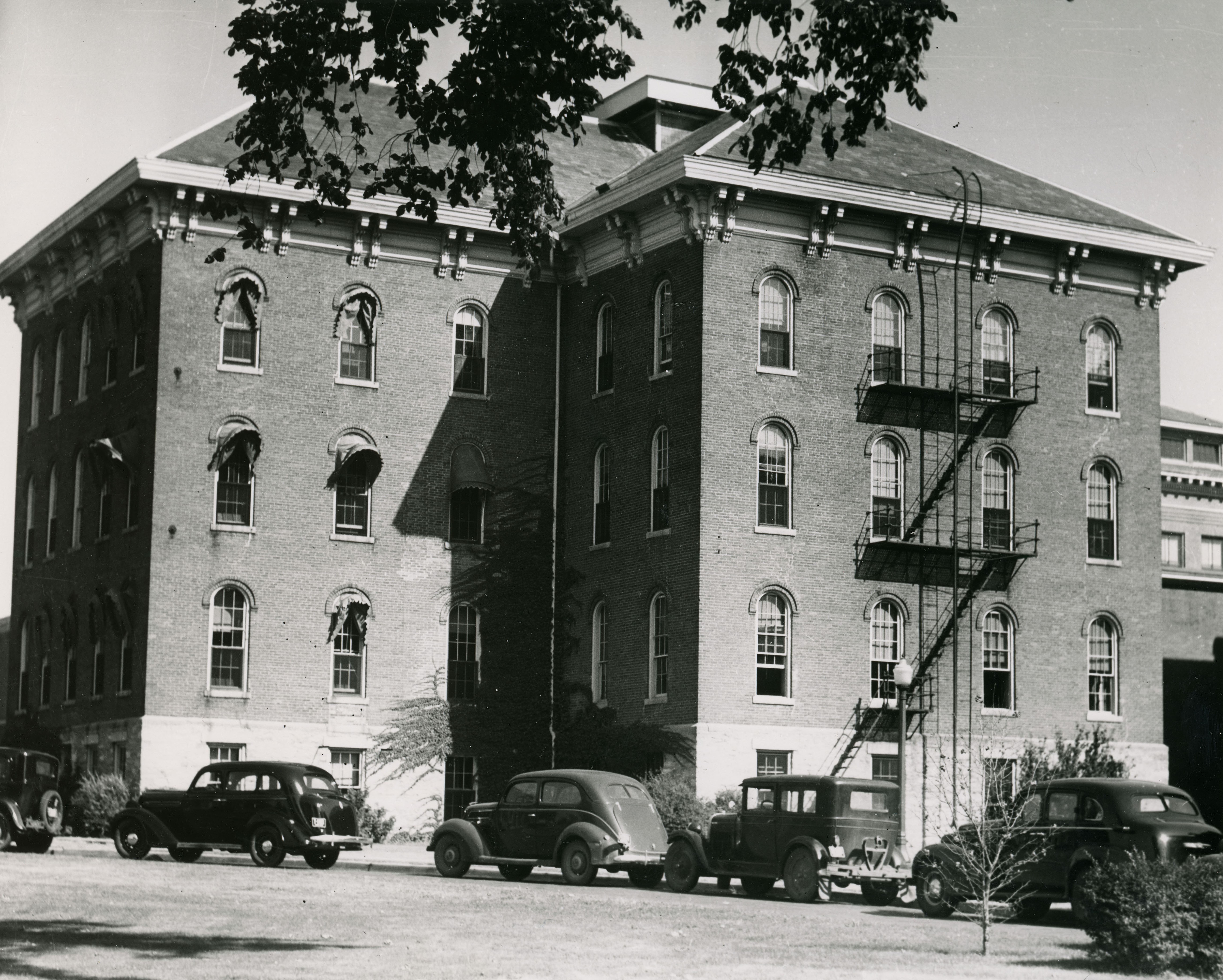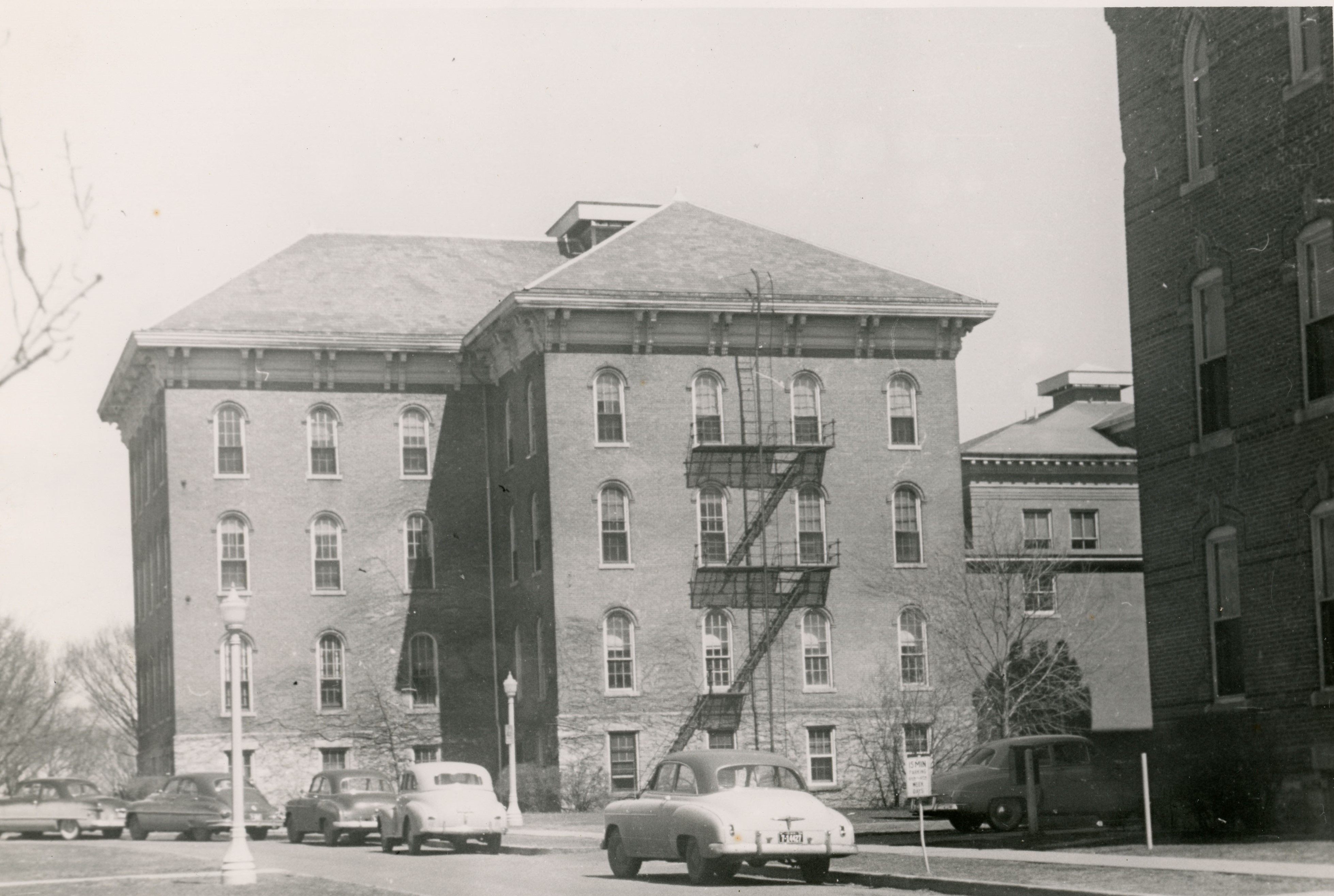 In the earliest years of the new normal school, nearly all the school's activities took place in this four-level brick and limestone building. The basement contained the dining room while the first floor rooms were remodeled into offices and classrooms. The second and third floors were used as dormitories. Students paid $2.65 per week for room and board. During the school's first year, 1876-1877, women lived on the second floor, and some men lived on the third floor. In 1877, the men moved from Central Hall to a small outbuilding, used during the Orphans' Home era as a chapel and office. Later, several classrooms were created on the second floor of Central Hall by removing partitions in the dormitory.