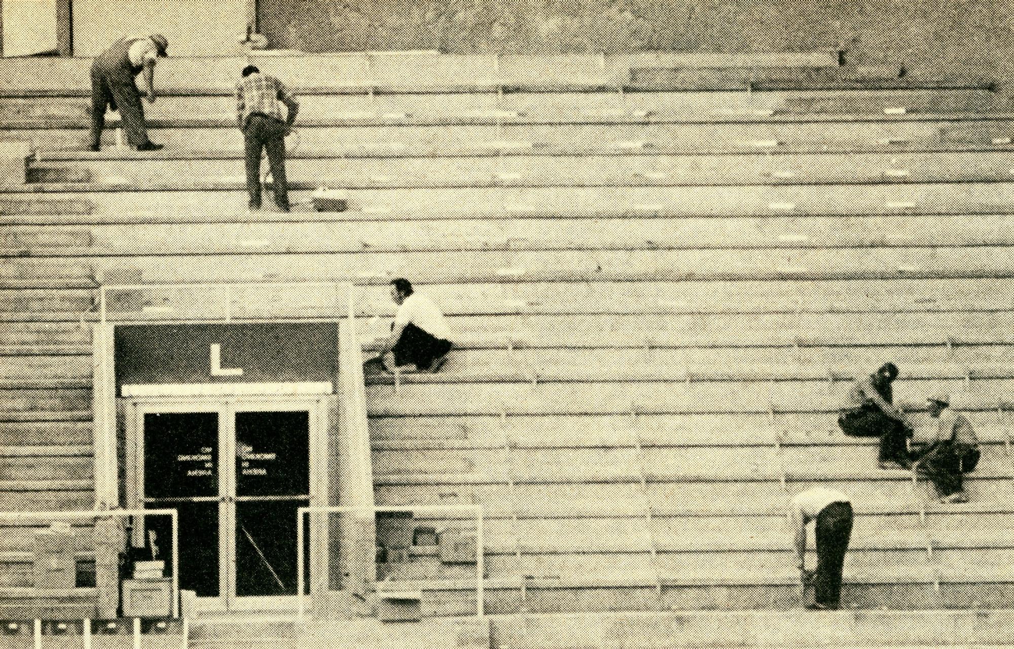 Because of inflation and consequent increase in construction costs, UNI put portions of the project on alternate status. Certain items such as additional seating, landscaping, a finished playing field, and locker room facilities would be added to the construction budget only when additional money became available. Heating costs alone were now estimated at $72,000 annually. Approximately $975,000 was taken from the student activities building fund instead of the proposed $300,000, leaving little for a fine arts auditorium.