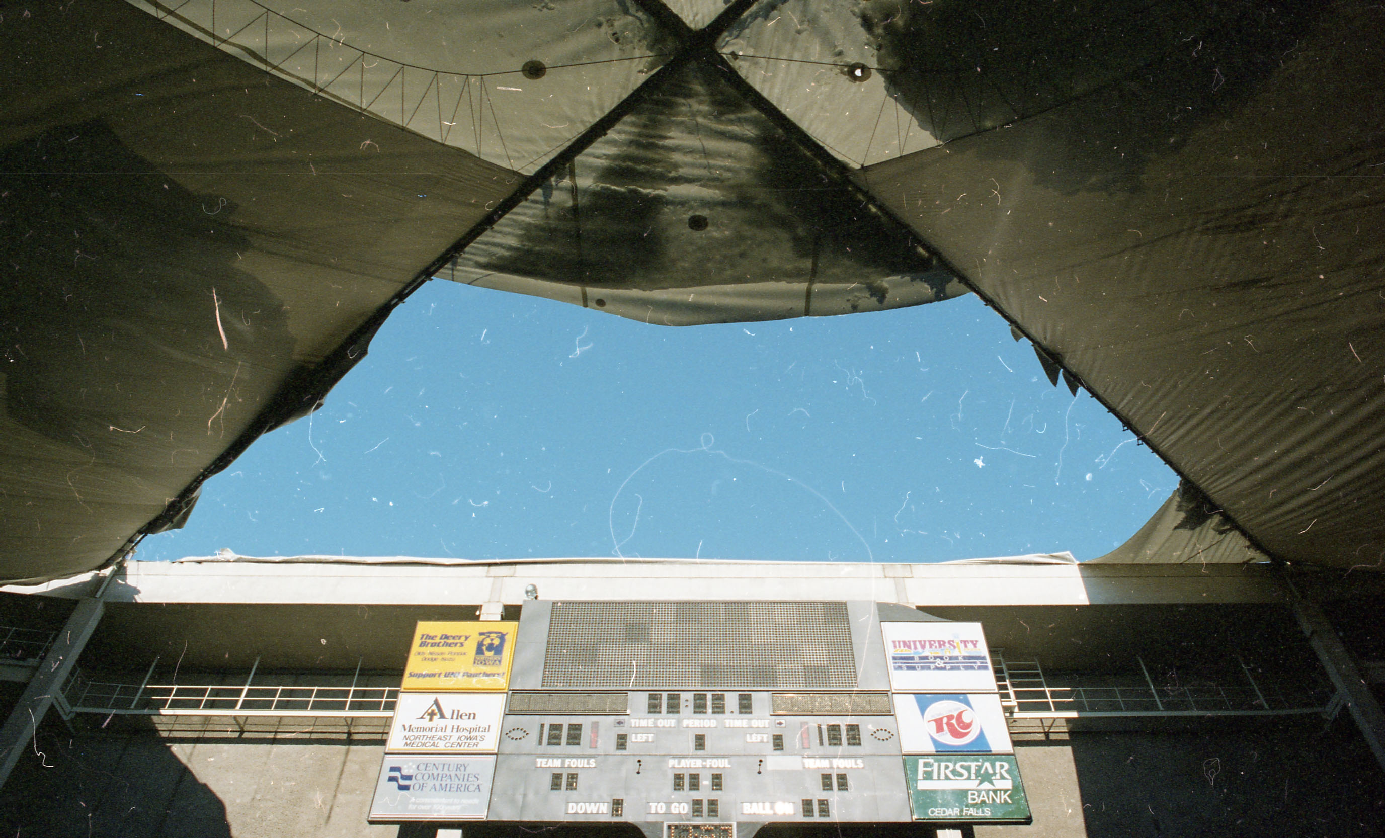 Commencement was moved to the West Gymnasium and basketball games were shifted to McElroy Auditorium in Waterloo and the Five Seasons Center in Cedar Rapids. The roof was reinflated December 19, 1994, after a temporary replacement panel was installed by the Birdair Company from New York. Damage was covered by the UNI-Dome’s $23 million insurance policy with $750,000 deductible. The insurance company agreed to pay about $4 million to settle UNI’s damage claim on the Dome in February 2000.