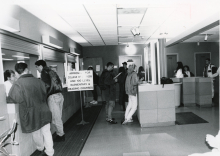 The Regents approved contracts for the Administration Building addition in April 1967, and construction began in May. Delays arose in February 1968 when truck drivers refused to cross picket lines set up by campus Physical Plant workers.