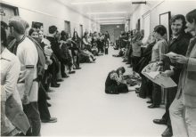 Gilchrist Hall was the site of a student protest in early 1976. Project Are You Listening?, as the organizers called it, supported 24-hour visitation in the residence halls. They initially blocked several Gilchrist Hall entrances with snow and later "sat-in" in the building's restrooms.
