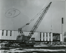 Mild fall and early winter weather allowed for construction progress. By January 1964, foundations and some structural walls were in place. Beard again emphasized the versatility of the building design; he stated an additional level could be added to the building and existing levels could be expanded. On November 18, 1964, a 1401 IBM computer was maneuvered into place in the new building and put into operation in December. Staff were scheduled to follow, but a strike by electricians and late equipment delayed the start of the move until March 8, 1965.